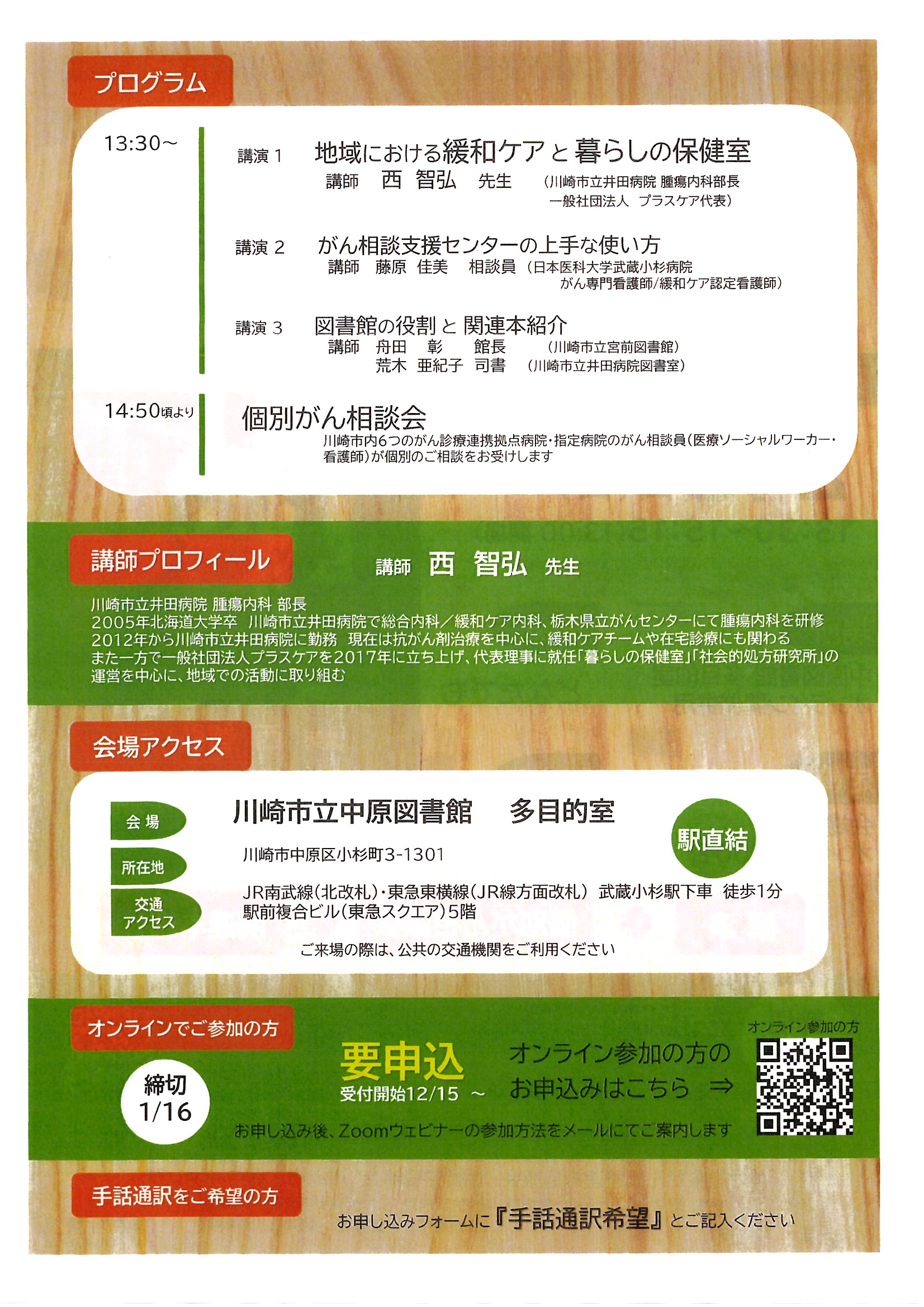あいにくの雨天で、大掛かりに準備した、オーバル広場での湯煎によるご飯作り、ホットケーキ作り、各種保存食の試食会は、中止になりましたが、区役所危機管理担当による「防災出前講座」は事前申し込みを上回る参加者(40数名)を迎えて盛会裏に終わることができました。出席者の皆さんには、お茶や、講座のハンドアウトや備える川崎増刊号や、区役所提供の防災用のお水、アルファ米、をお持ち帰り戴きました。