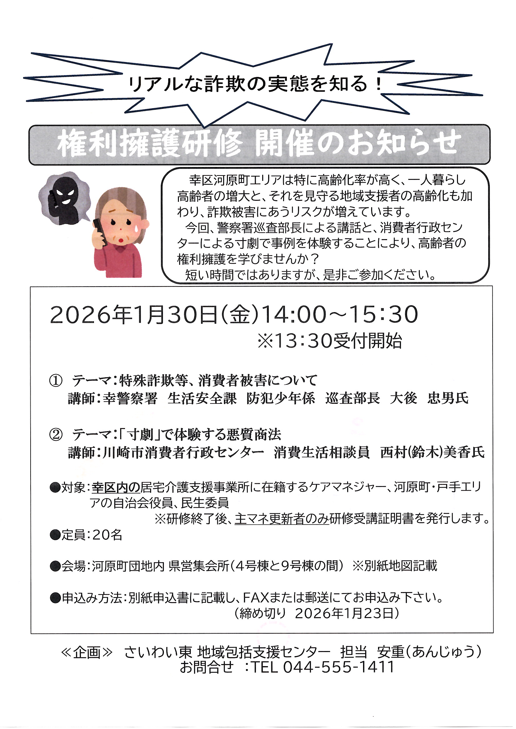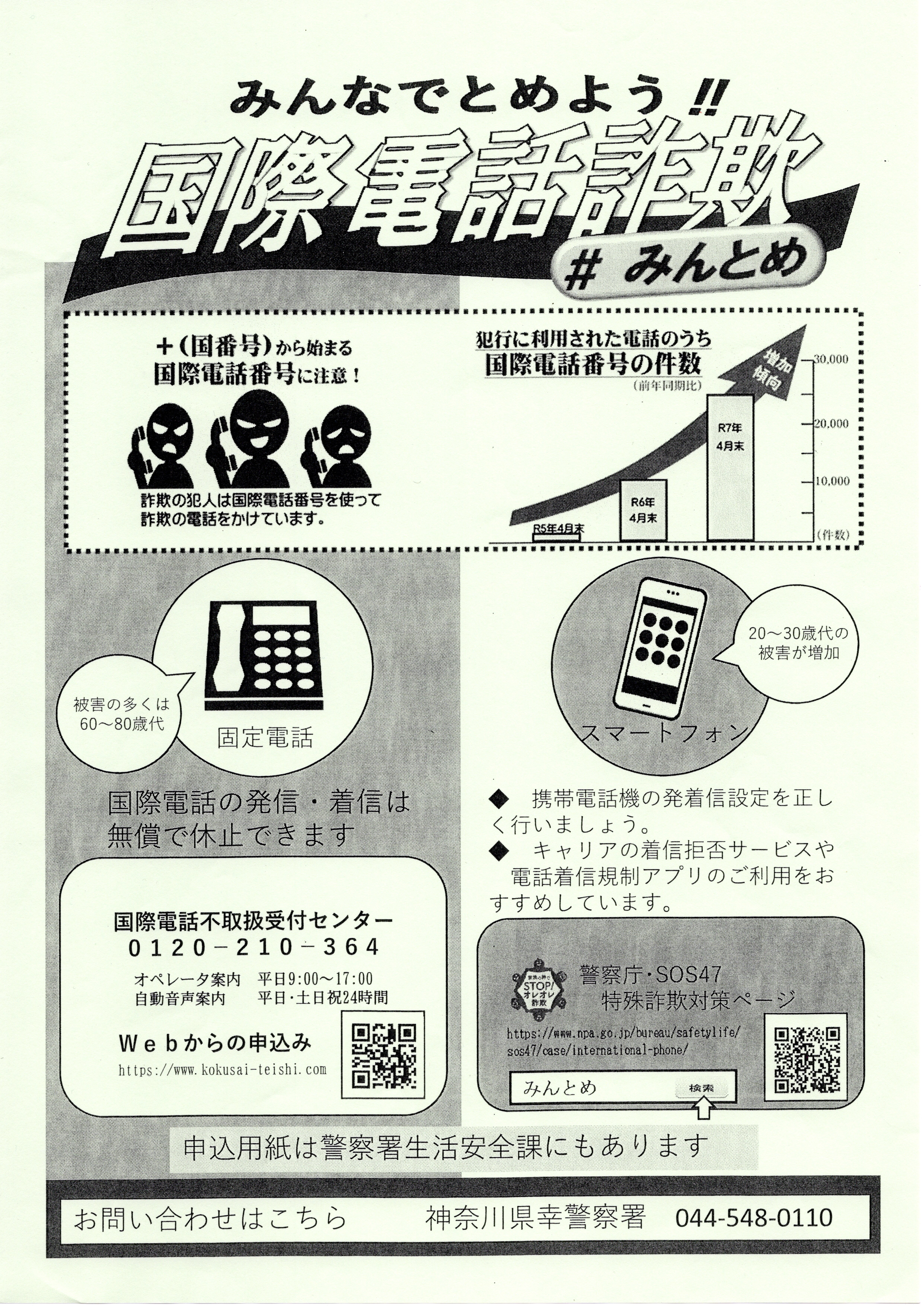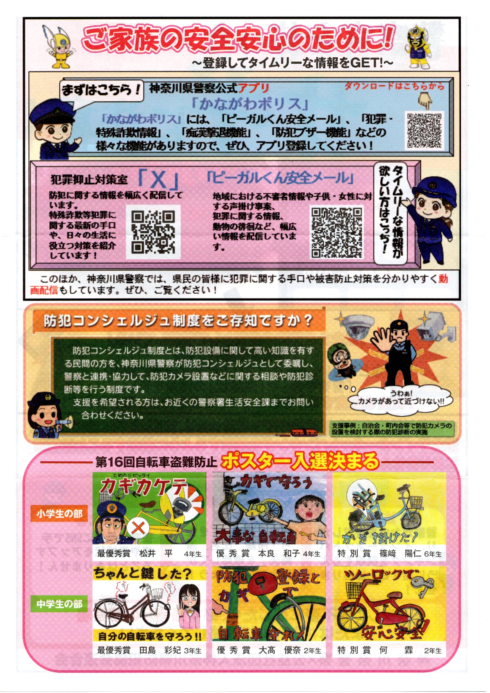 幸警察署の警部さんの最近の犯罪・事故状況の話を聞いた後、それぞれの地域のパトロールを実施しました。最近の特殊詐欺、自転車盗、自転車が絡む事故についての話がありました。ヘルメット着用の励行や、自転車の施錠、怪しい電話があった時の警察への通報など気を付けましょう。