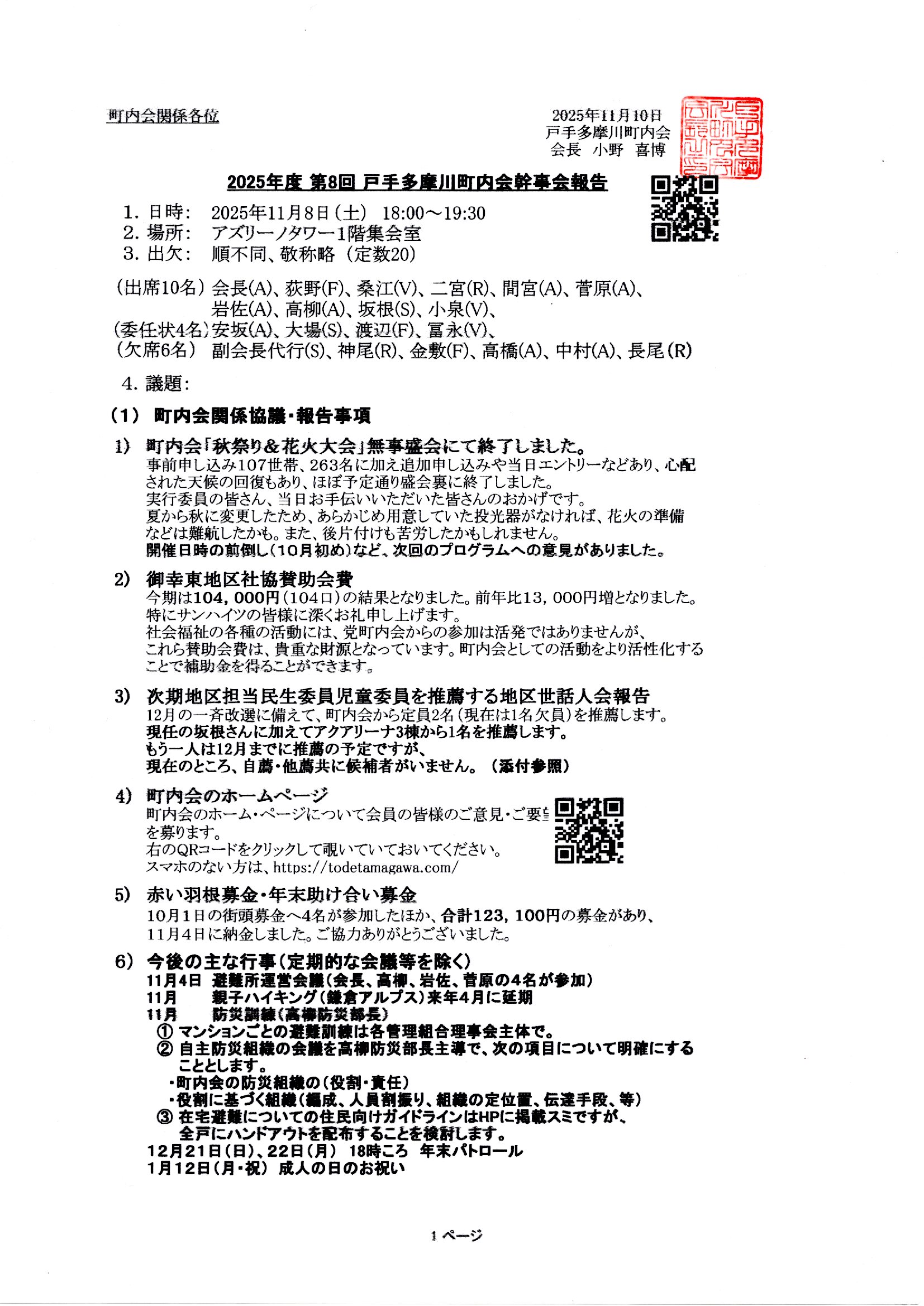 第8町内会幹事会の添付資料