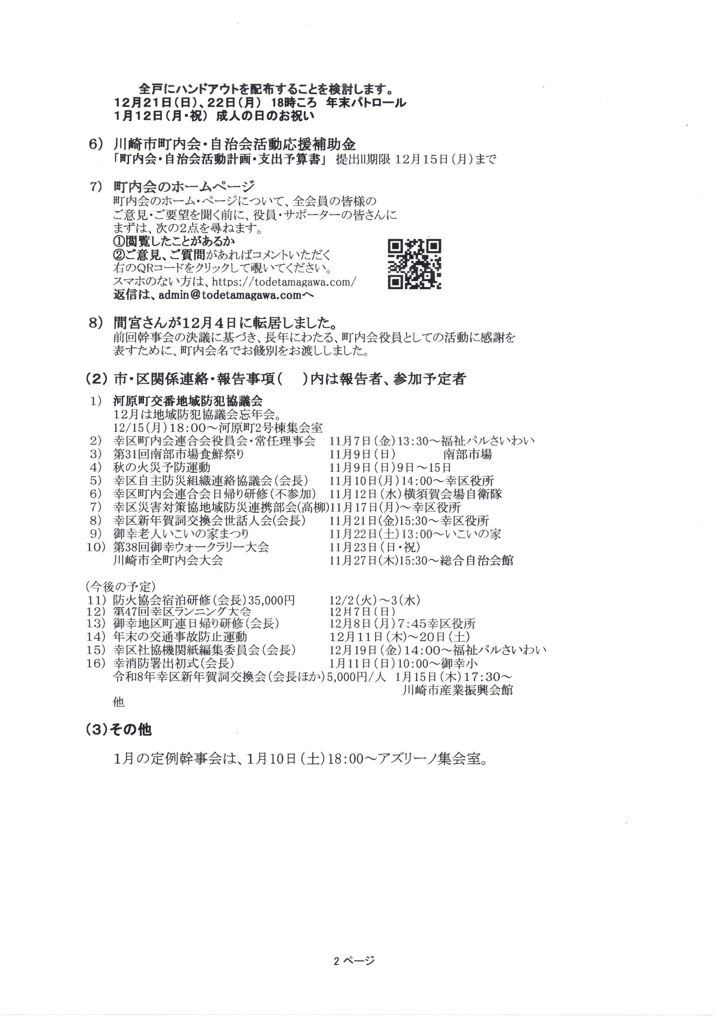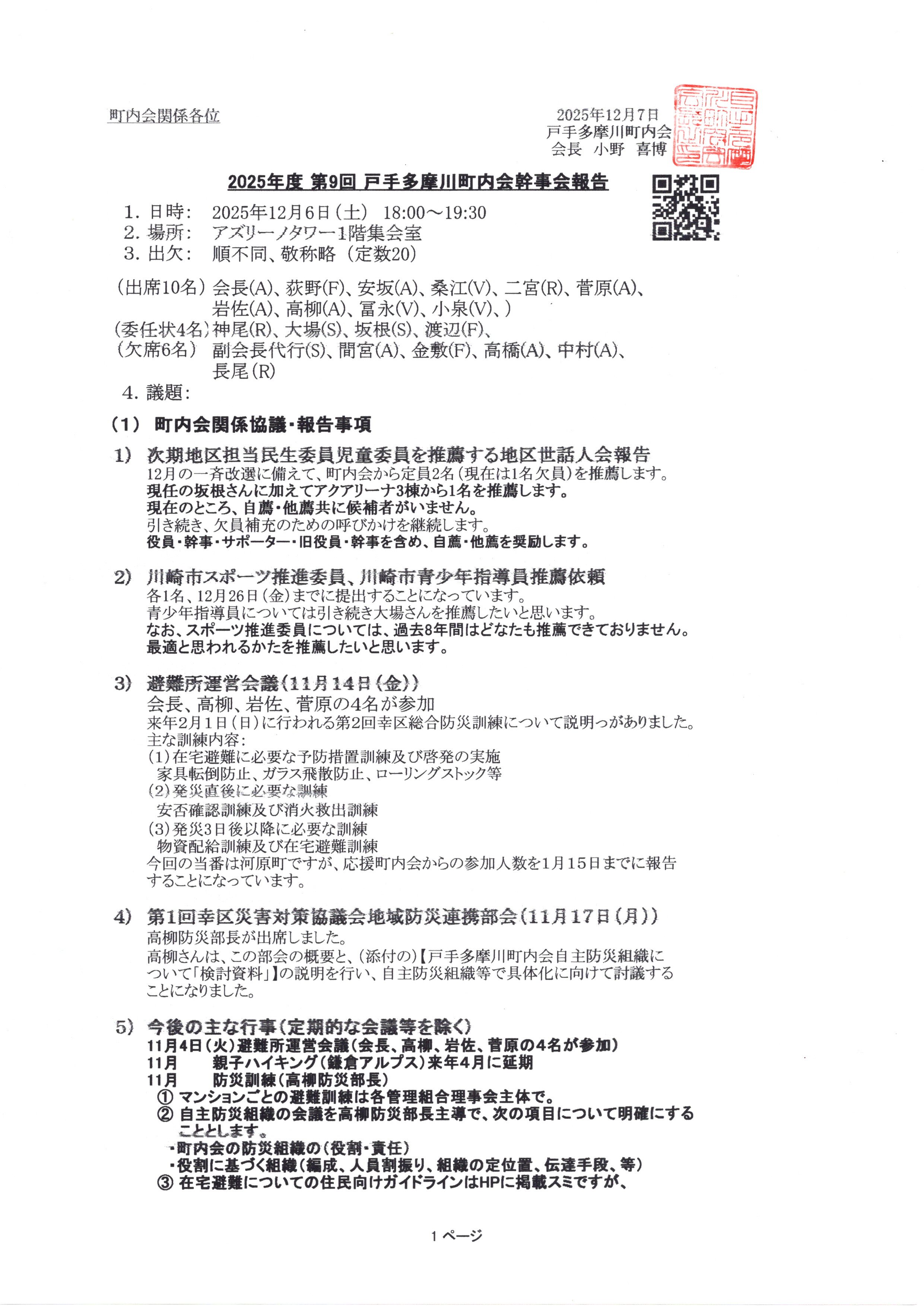 1.2023年度第2回戸手多摩川町内会自主防災委員会を行いました。