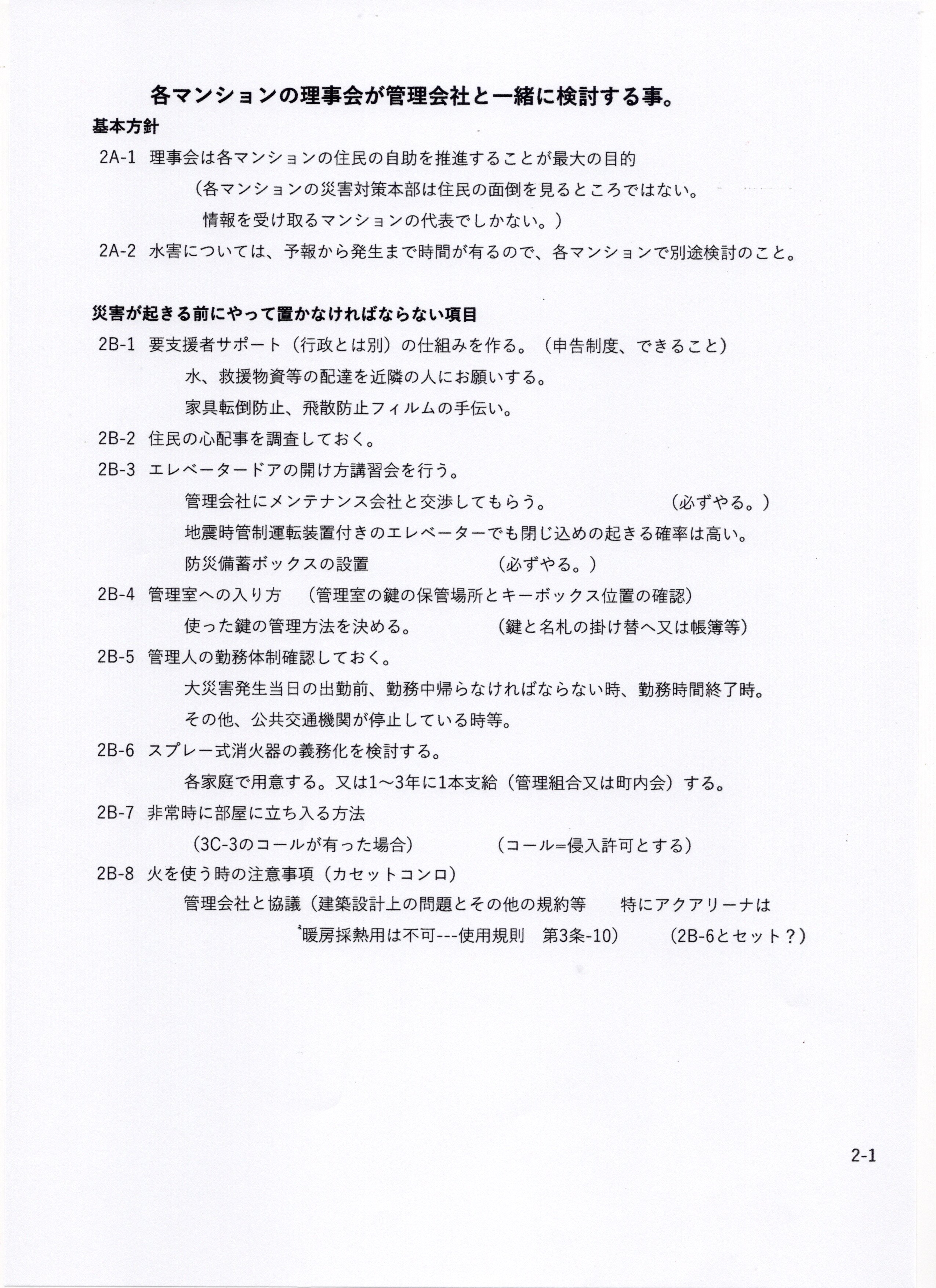 11月9日(水)に自主防災会で検討中の「各マンションでやる事について」