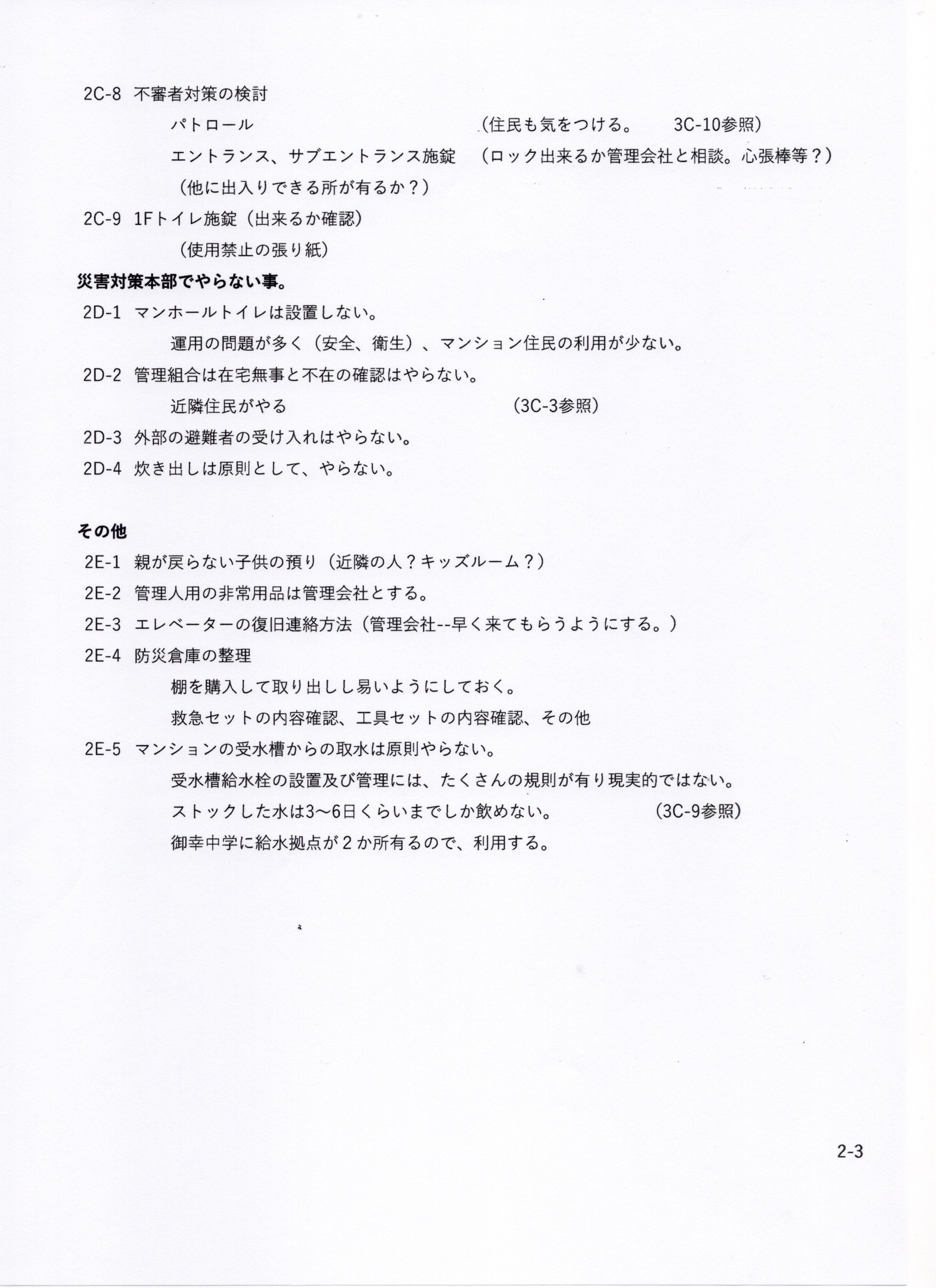 2. 避難訓練は、年内は無理なので、来春に実施の予定を組む)