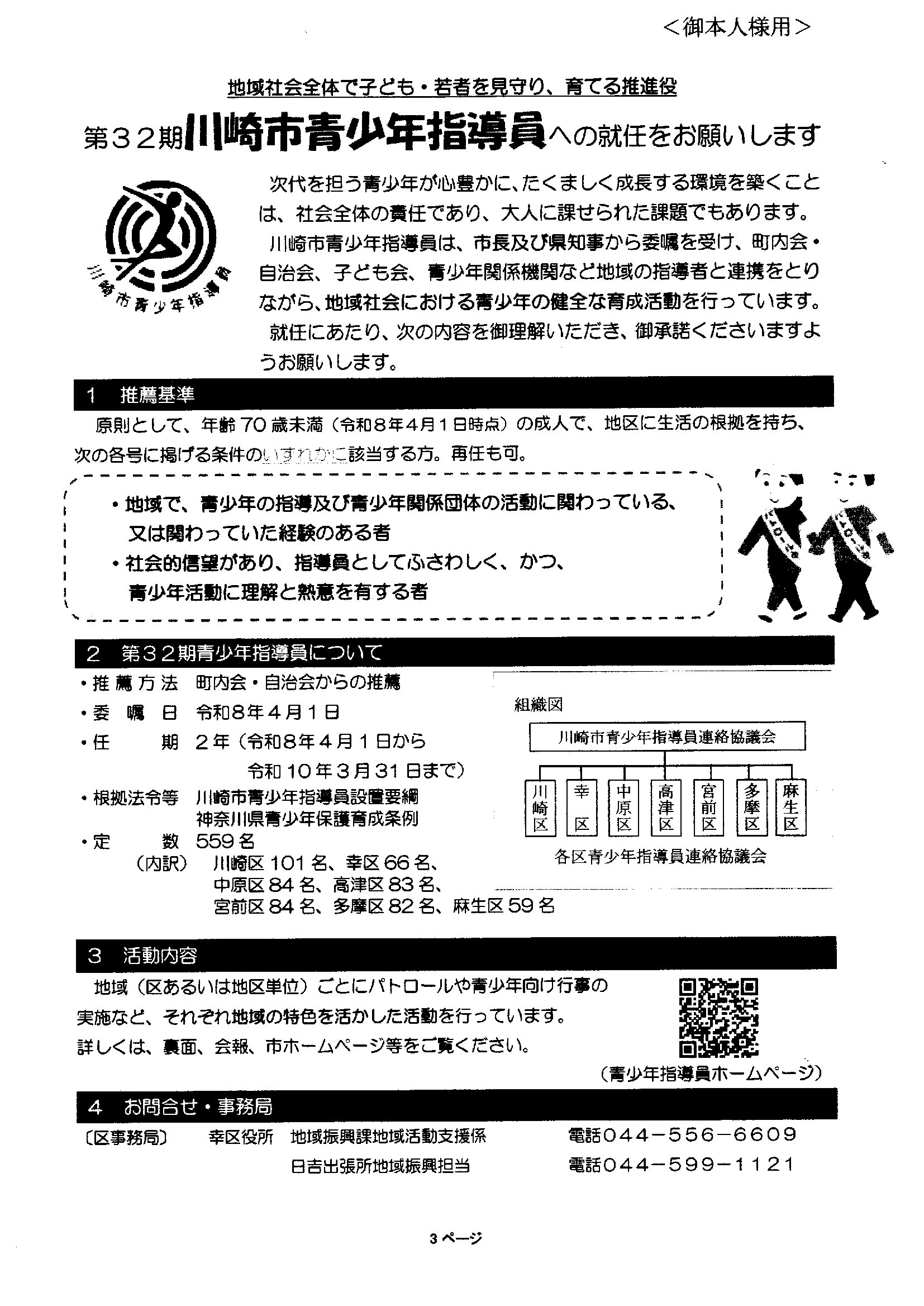 《川崎市青少年指導委員》、《川崎市スポーツ推進委員》の資料
