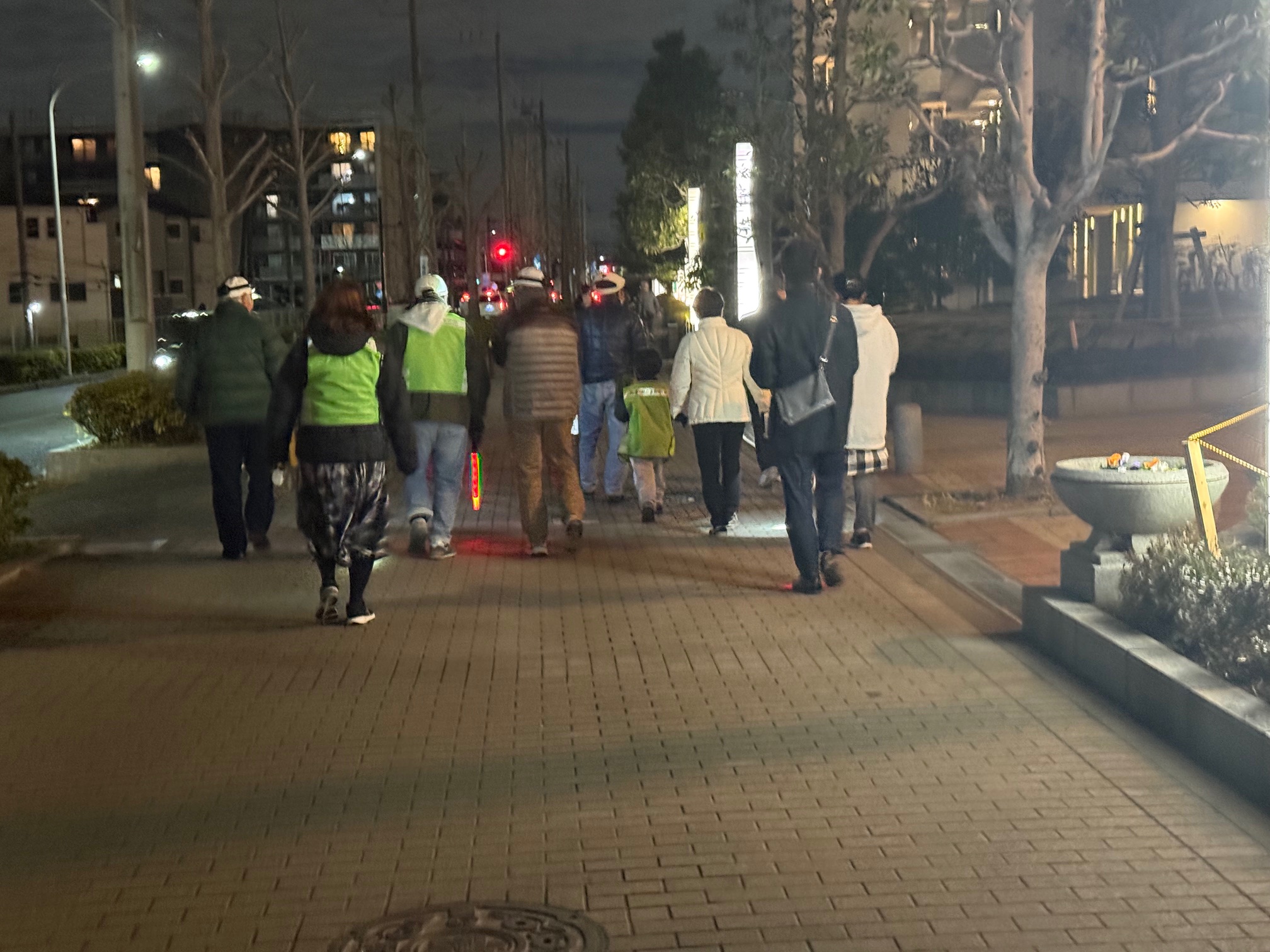 幸警察署の警部さんの最近の犯罪・事故状況の話を聞いた後、それぞれの地域のパトロールを実施しました。最近の特殊詐欺、自転車盗、自転車が絡む事故についての話がありました。ヘルメット着用の励行や、自転車の施錠、怪しい電話があった時の警察への通報など気を付けましょう。