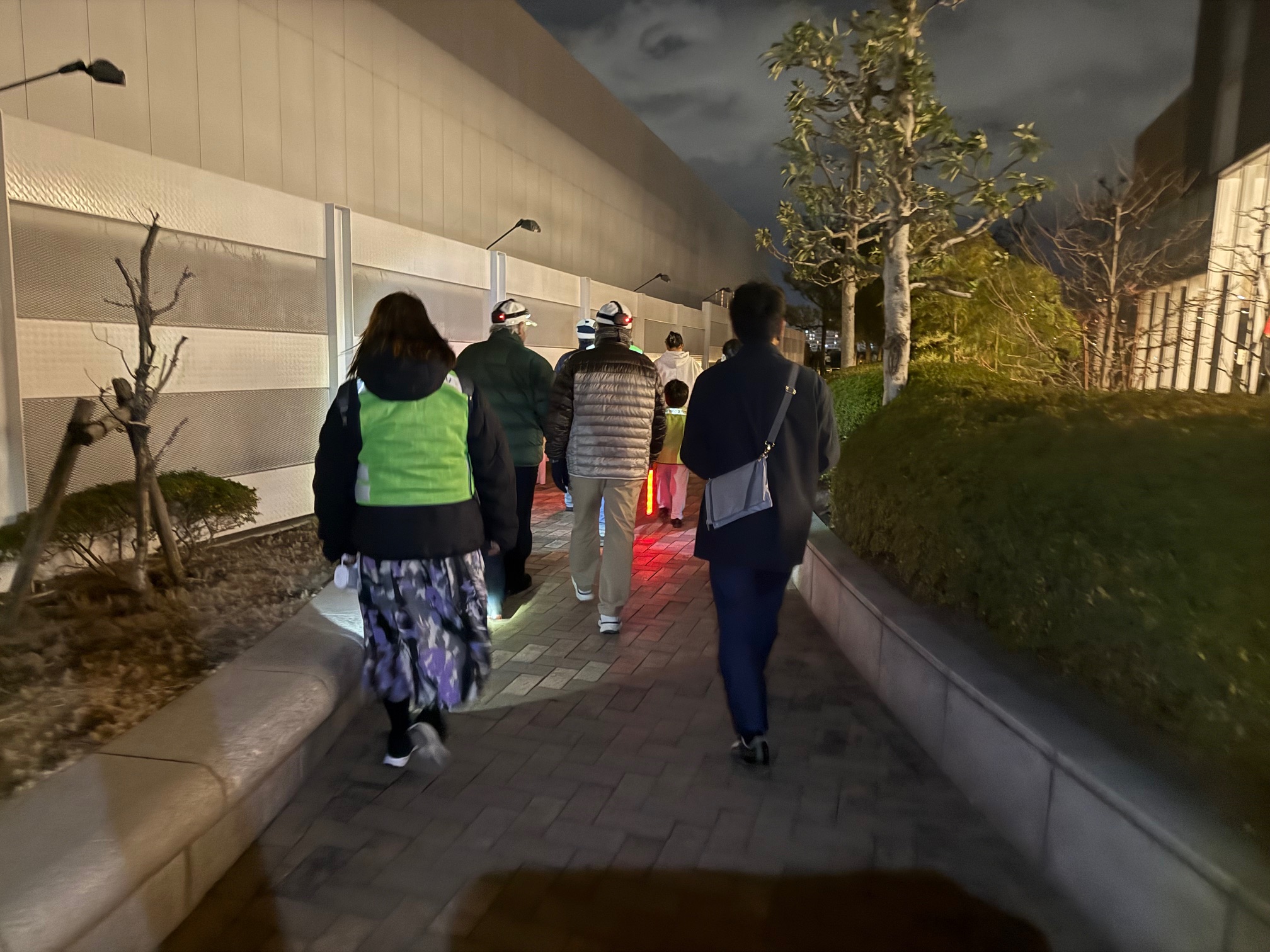 1.地震に伴い発生した火災を想定した避難訓練(火災発生階に応じた段階的避難)を実施し、
